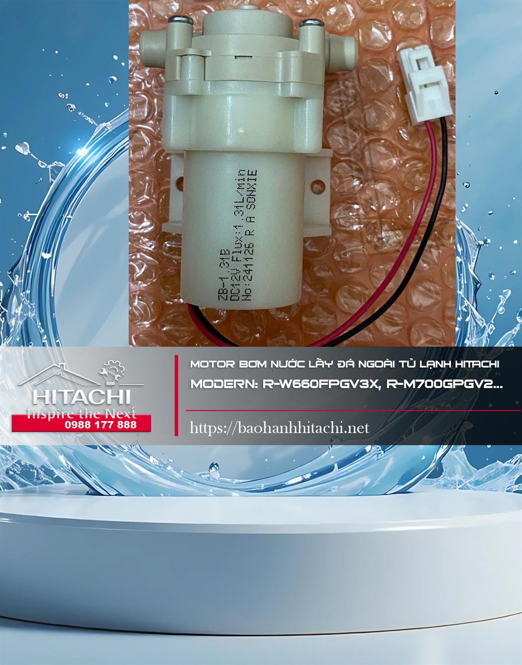 Đặt mua Motor bơm lấy đá ngoài tủ lạnh Hitachi. Modern: R-W660FPGV3X, R-M700GPGV2...