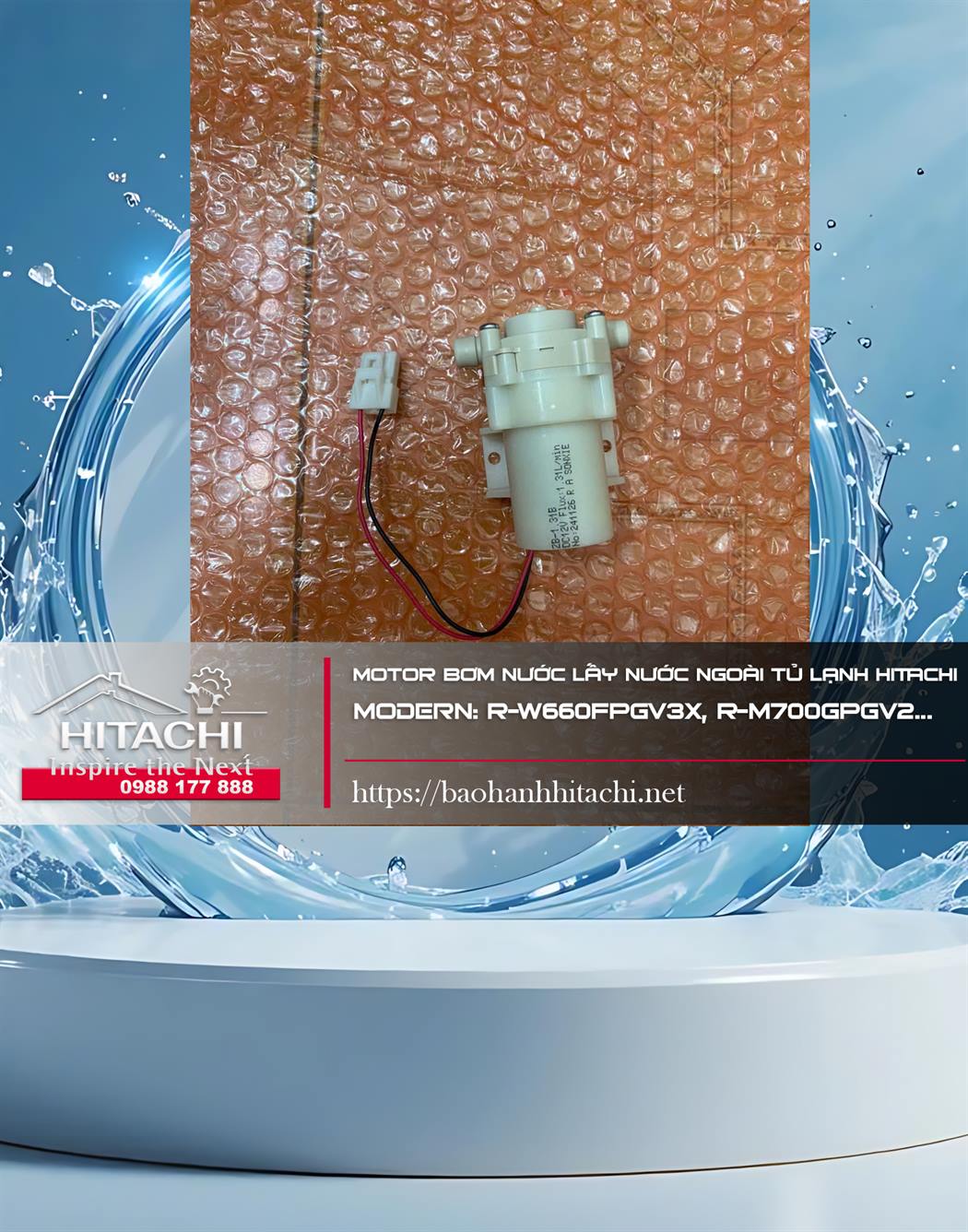 Motor bơm nước lấy nước ngoài tủ lạnh Hitachi. Moderrn: R-W660FPGV3X, R-M700GPGV2…